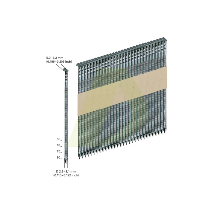 Опис до 4000 цвяхів у стрічці, D34°, скріплені папером, 2,8 x 63 мм, кільце NK G12 (630151000)