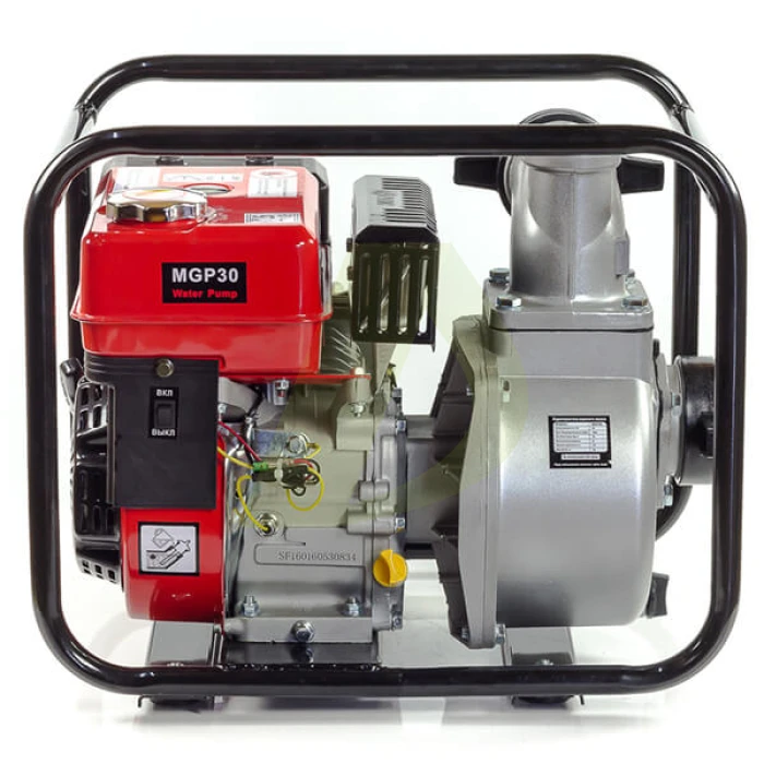 Мотопомпа Matari MGP30 створена на допомогу садівнику або городнику, щасливому власнику приватних володінь. Здатна викачувати воду з відкритих водойм та доставляти її на великі відстані. Потужний агрегат можна використовувати, як підмога для поливу городу та зрошення саду, для відкачування води з басейну або іншого резервуару. Висока продуктивність дозволяє використовувати агрегат не тільки для побутових, але і для комерційних цілей. Апарат здатний впоратися з складнішими завданнями у фермерському господарстві чи садівництві. Невелика за своєю масою і габаритами помпа не вимагатиме багато місця для зберігання, має достатню мобільність, тому що її легко доставити на будь-який робочий майданчик. Агрегат для перекачування води здатний впоратися з доставкою води з малими домішками, частинки не повинні перевищувати 6 мм у діаметрі. Це означає, що вода має бути чистою або слабозабрудненою. Виробник гарантує тривалий термін якісного обслуговування та повний перелік необхідних послуг протягом пробігу в 500 мотогодин. Завдяки паливному двигуну внутрішнього згоряння помпа не потребує електрики, здатна працювати на великих відстанях від місць проживання.Особливості Matari MGP30Потужний двигун є власною розробкою спеціалістів торгової марки. Декілька вдосконалених деталей дозволяють використовувати установку з максимальною потужністю, завдяки покращеному наповненню циліндра та максимальній переробці паливної суміші. Одноциліндровий мотор з верхнім розташуванням клапанів забезпечує низький рівень витрати палива, в якості якого може використовуватися бензин АІ-95 або 92. Тривалість терміну надійної експлуатації продовжує ефективне повітряне охолодження з огляду на відкриту рамну конструкцію. Декілька систем захисту виключають виникнення аварійної ситуації, зокрема це стосується захисту від перевантаження.Швидкий пуск двигуна в роботу забезпечує витяжний трос. Для керування ручним стартером досить невелике зусилля та деякі навички. Розкрутити колінвал можна з одного несильного ривка. Пружинний механізм, система зниження початкового тиску в циліндрі дозволяє швидко спалахнути пари бензину, що, зрештою, благотворно відбивається на необхідних витратах обслуговування агрегату (бензин, масло).Збільшений вихідний отвір на 80 мм сприяє більшій продуктивності. Мотопомпа забезпечує перекачування 60 м3 на годину. Для роботи необхідний забірний та напірний шланги з діаметром на 80 мм. Діаметра шланга та потужності двигуна вистачає на підйом води з глибини 8 м і подачу її на висоту до 30 м. Слід враховувати, що в горизонтальному напрямку мотопомпа Matari MGP30 може доставляти воду на дуже велику відстань.Всі елементи конструкції агрегату знаходяться всередині металевого каркаса, який забезпечує їх надійний захист від механічних зіткнень. Міцна сталева труба покрита антикорозійним складом, що захищає її від вологості. Спеціальна конструкція забезпечує захоплення для перенесення та гідну стійкість на рівній площадці під час роботи. Для захисту від вібраційних коливань між рамою і двигуном знаходяться спеціальні подушки. Вони не тільки гасять вібрацію, а й перешкоджають її розповсюдженню на майданчику.У бак для палива міститься 3,6 л. Витратна кількість бензину 340 гр/кВт.год, кінцева цифра багато в чому залежить від рівня навантаження. Мотоп