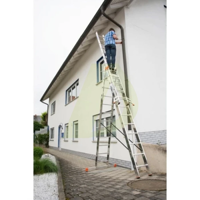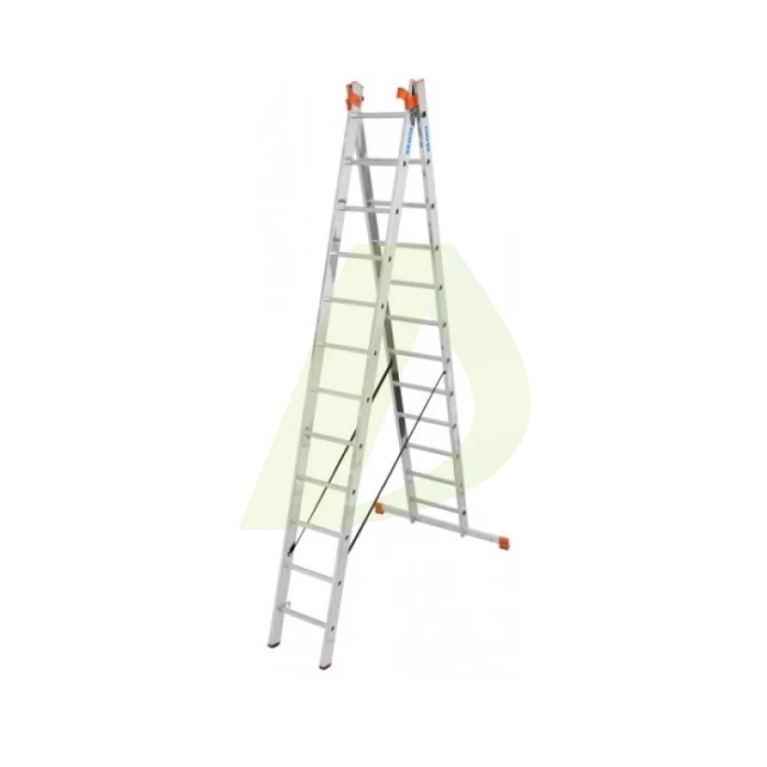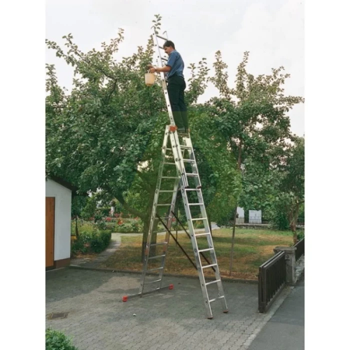 Опис до Драбина двостороння алюмінієва KRAUSE Tribilo, 3 секції, 12 сход., 3,5-8,6 м (129703)