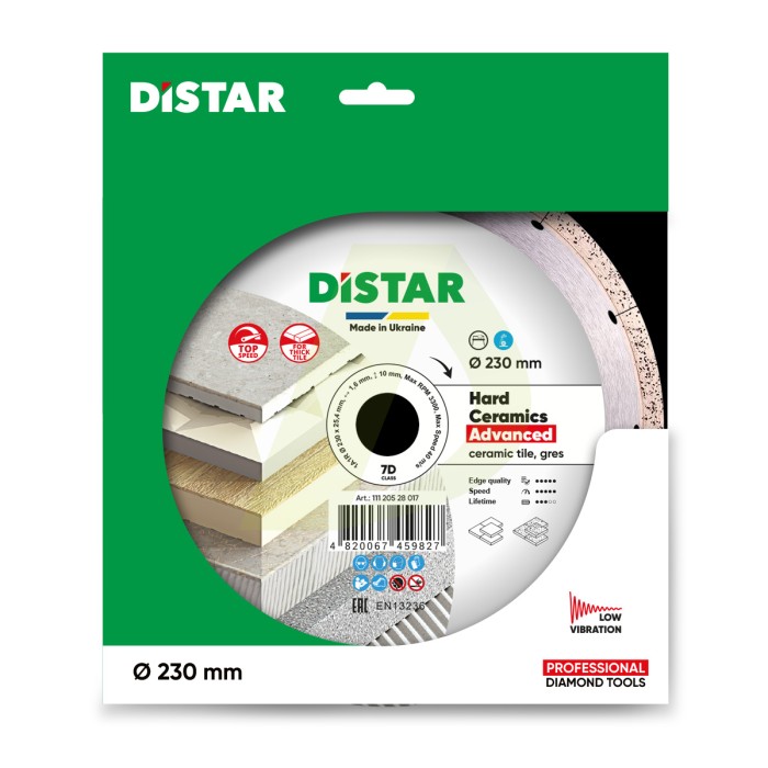 Характеристики для Круг алмазний вiдрiзний 1A1R 230x1,6/1,2x10x25,4 Hard ceramics Advanced