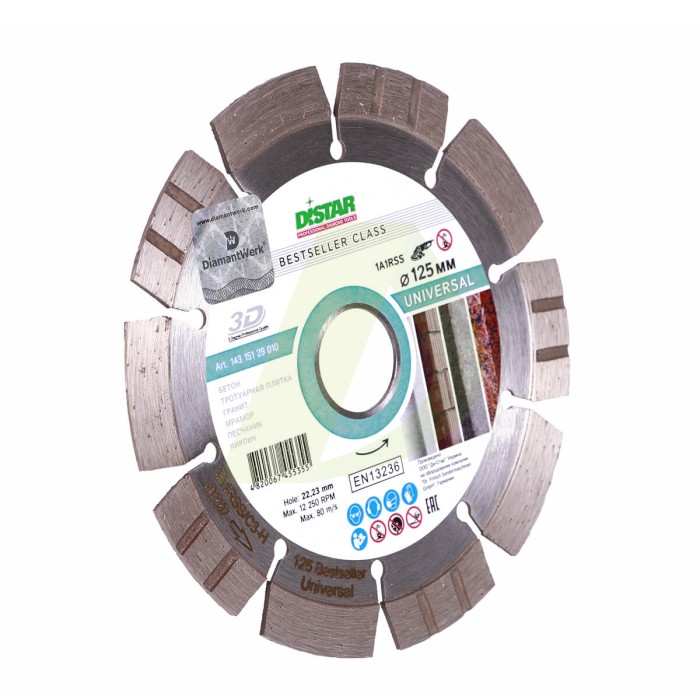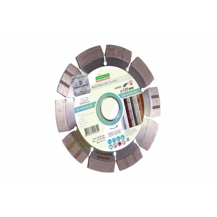 Характеристики для Круг алмазний вiдрiзний 1A1RSS/C3 125x2,2/1,4x11x22,23-10-HIT Bestseller Universal