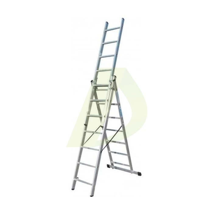 Описание к Лестница двусторонняя алюминиевая ELKOP VHR Trend, 3 секции, 7 ступ., 1,9-4 м (37491)