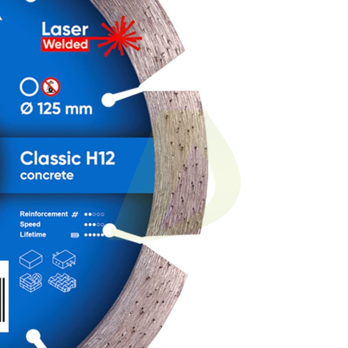 Характеристики для Круг алмазный отрезной 1A1RSS/C3-W 125x2,2/1,3x22,23-10-ARP 30x2,2x10+2 R50,5 Classic H12